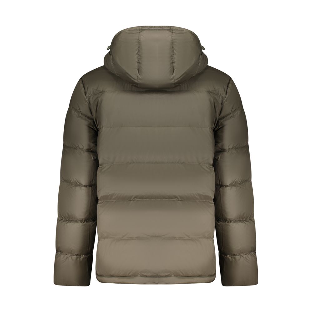 Eine langärmlige Jacke mit abnehmbarer Kapuze, 2 Außentaschen, 2 Innentaschen, wasser- und windabweisend, Reißverschluss, Print, Logo und aus 100% recyceltem Nylon.