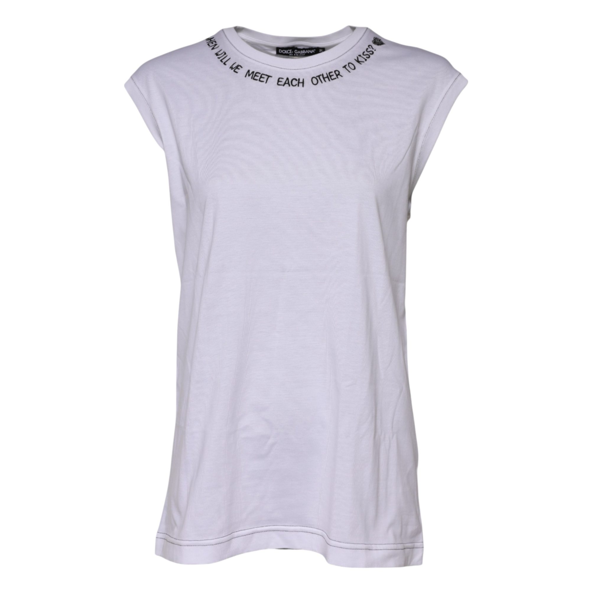 Wunderschönes brandneues, 100% authentisches Dolce & Gabbana T-Shirt aus Baumwolle mit ärmellosem Rundhalsausschnitt und Print.