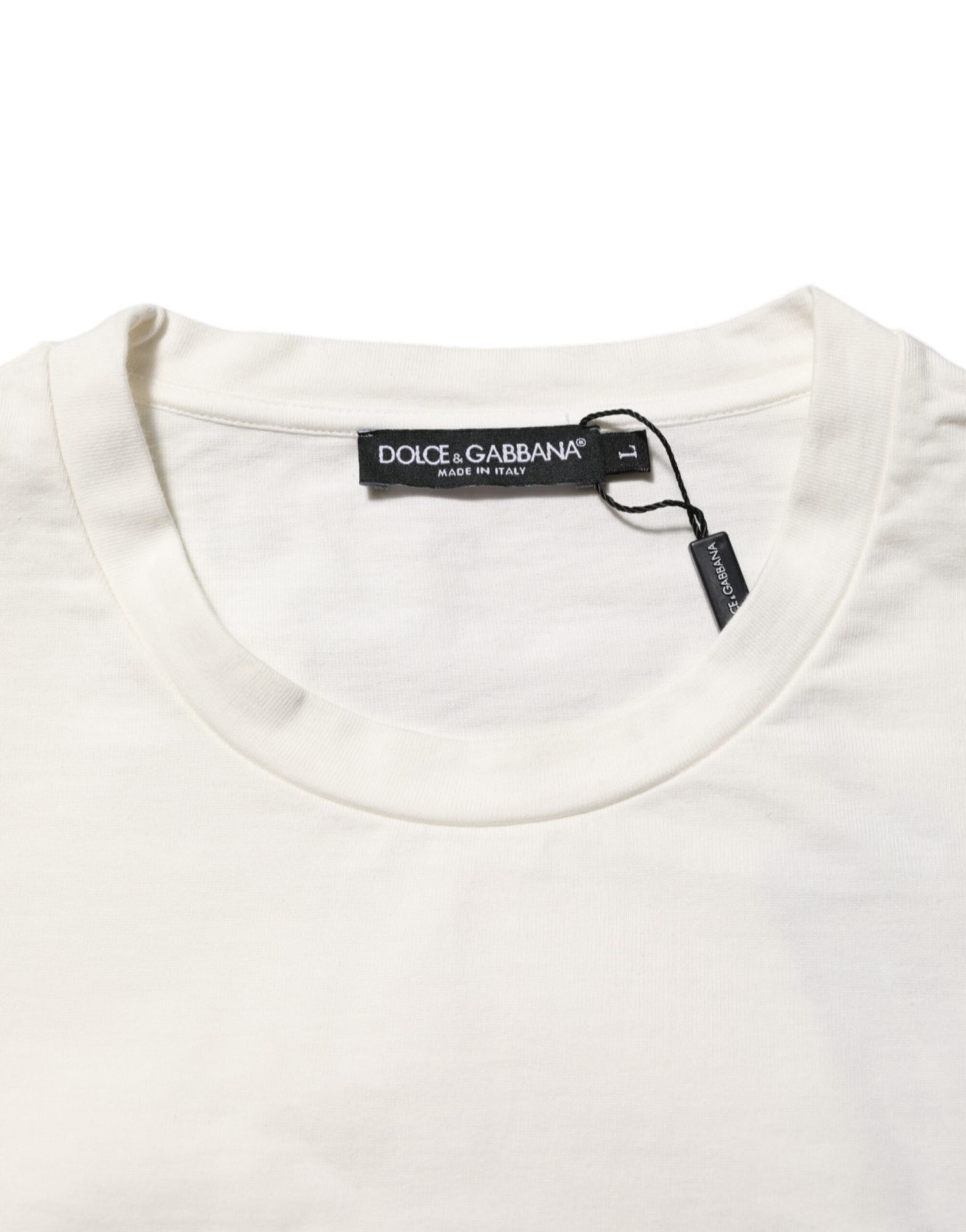 Wunderschönes, brandneues, 100% authentisches weißes T-Shirt von Dolce & Gabbana, das aus hochwertiger Baumwolle gefertigt ist und sich weich und atmungsaktiv anfühlt. Es ist mit einem klassischen Rundhalsausschnitt und kurzen Ärmeln ausgestattet und verfügt über den markentypischen Logodruck auf der Vorderseite für einen kühnen und dennoch zeitlosen Look. Ein vielseitiges Stück, das mühelos Luxus in den Alltag bringt.