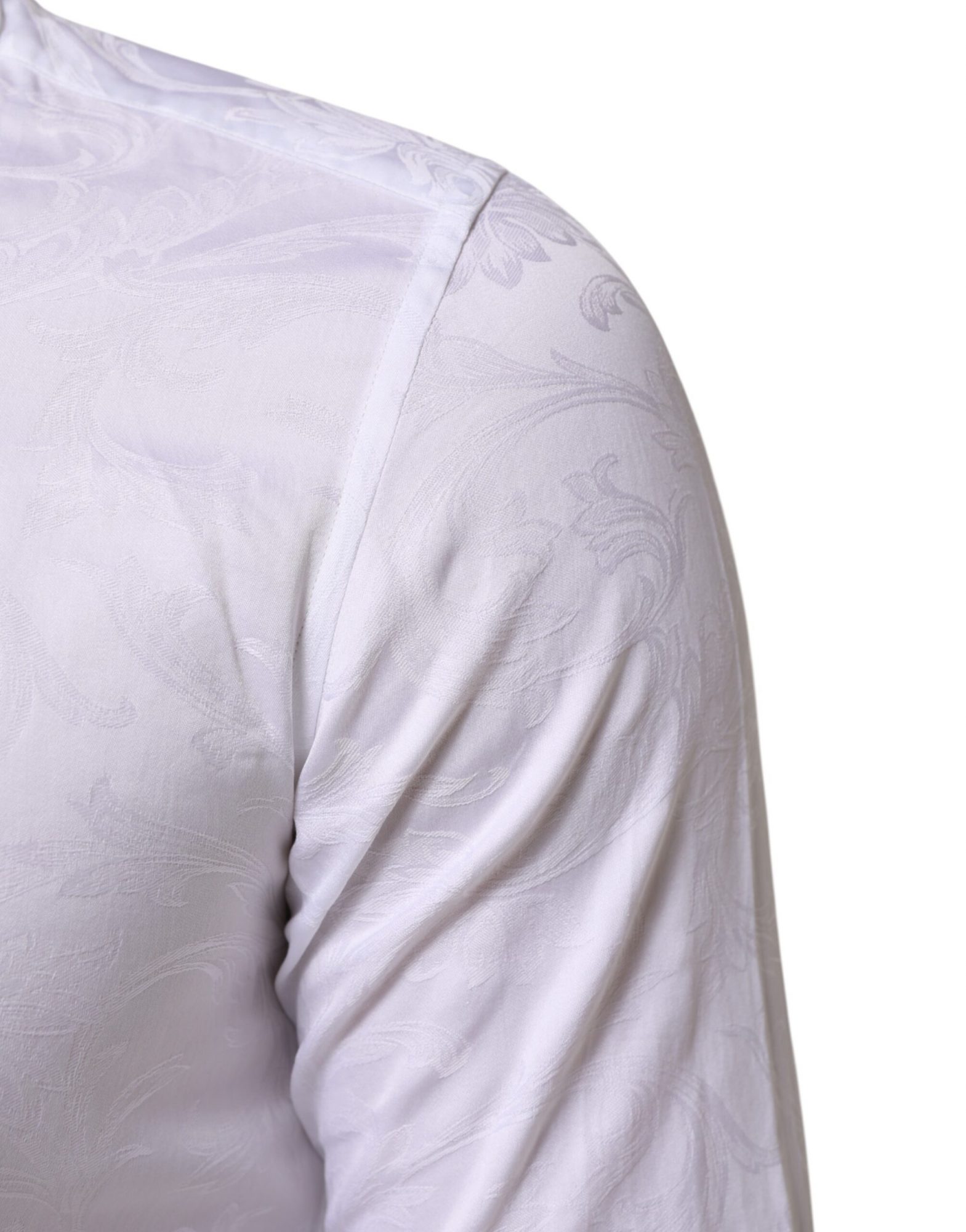 Wunderschönes brandneues, 100% authentisches Dolce & Gabbana Martini Fit Hemd aus feiner weißer Baumwolle mit elegantem Paisley-Jacquard-Gewebe. Die Martini-Passform bietet eine scharfe, maßgeschneiderte Silhouette, die moderne Anzüge oder Abendkleidung ergänzt.