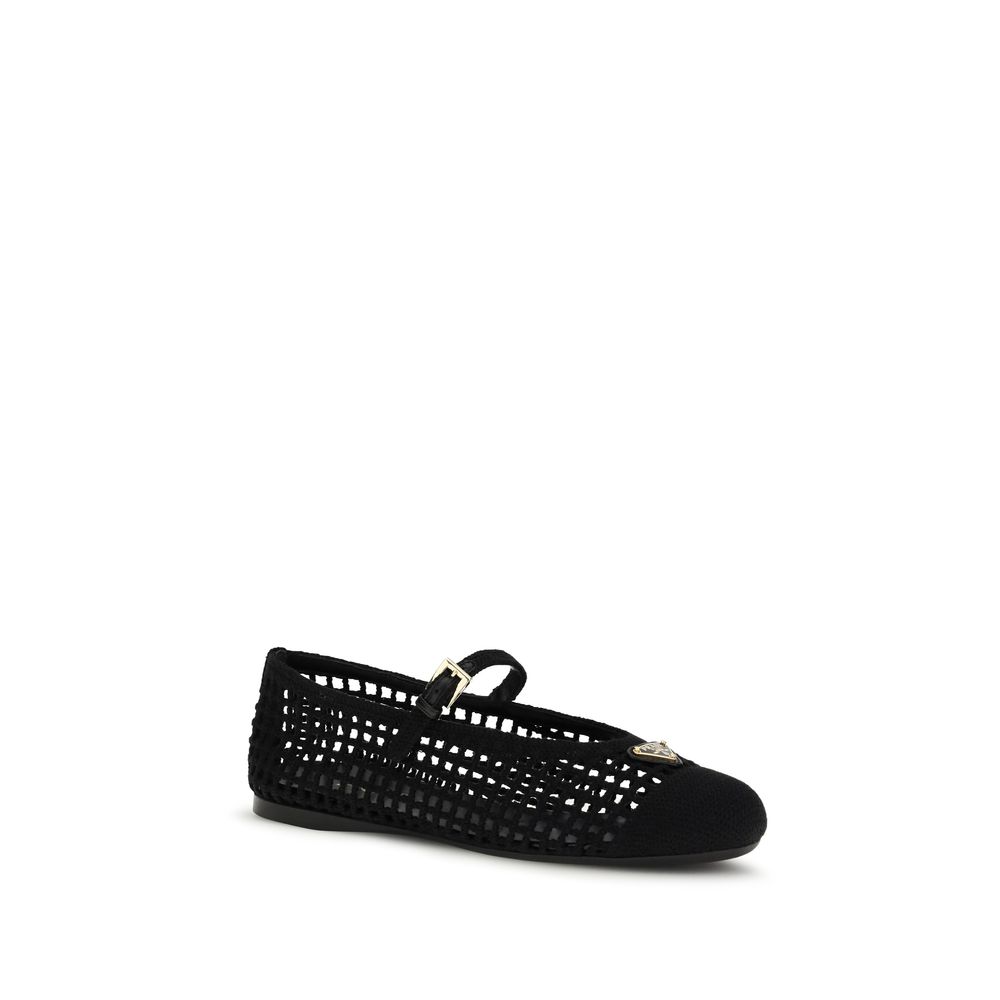 Die gehäkelten Ballerinas von Prada vereinen handwerkliche Eleganz mit unverwechselbaren Details. Das Obermaterial, verziert mit einer Logo-geprägten Metallschnalle, wird durch das emaillierte Metall-Dreieckslogo, das ikonische Symbol der Marke, ergänzt. Die einteilige 0,5-mm-Gummisohle mit Markenlogo sorgt für Komfort und einen Hauch von raffiniertem Stil.